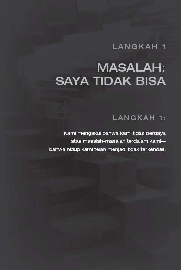 Dimulai dengan berhenti dari upaya-upaya kita yang melelahkan dan tanpa hasil, untuk memperbaiki, mengelola, dan mengendalikan kehidupan kita, kita menemukan bagaimana Allah dapat melakukan bagi kita apa yang tidak dapat kita lakukan sendiri — memberdayakan kita untuk mengalami kebebasan baru, hubungan-hubungan yang lebih kuat, dan sukacita yang lebih dalam, dalam situasi apa pun.